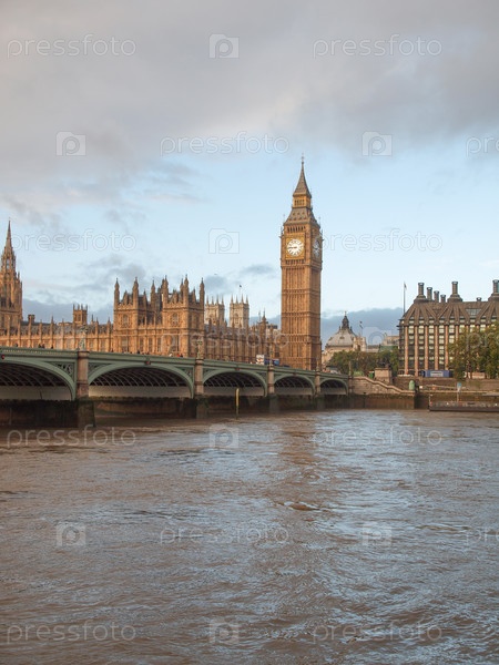 Панорама с Вестминстерским мостом, зданием Парламента и Биг Беном в Лондоне, Великобритания