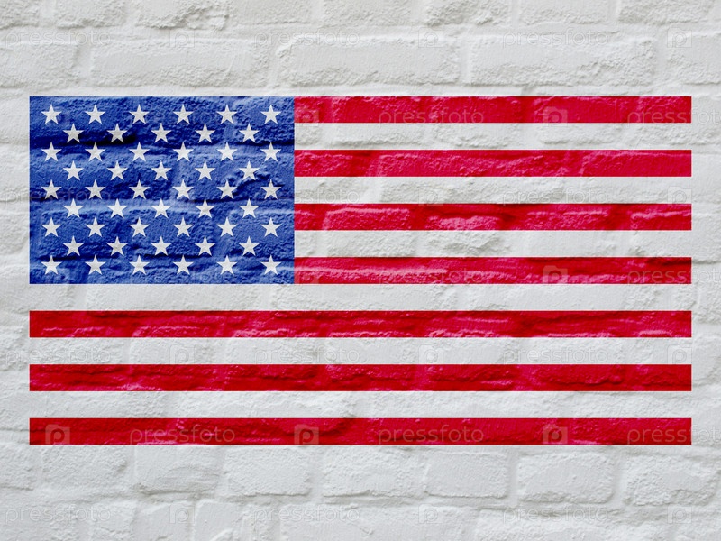 Флаг Соединенных Штатов Америки на белой кирпичной стене