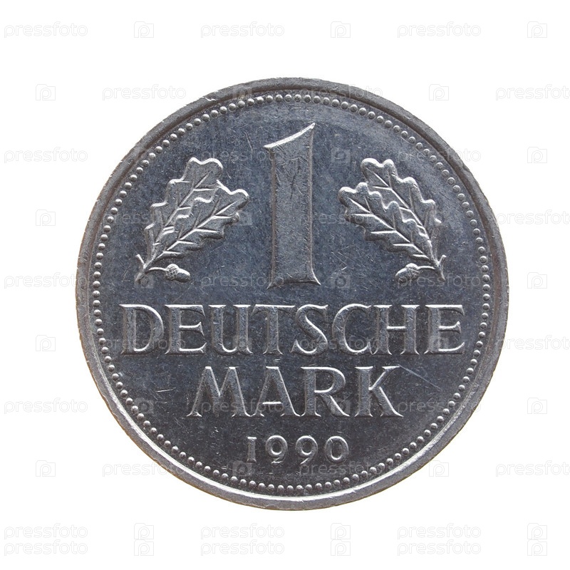 Монета достоинством 1 немецкая марка, изолированная на белом фоне