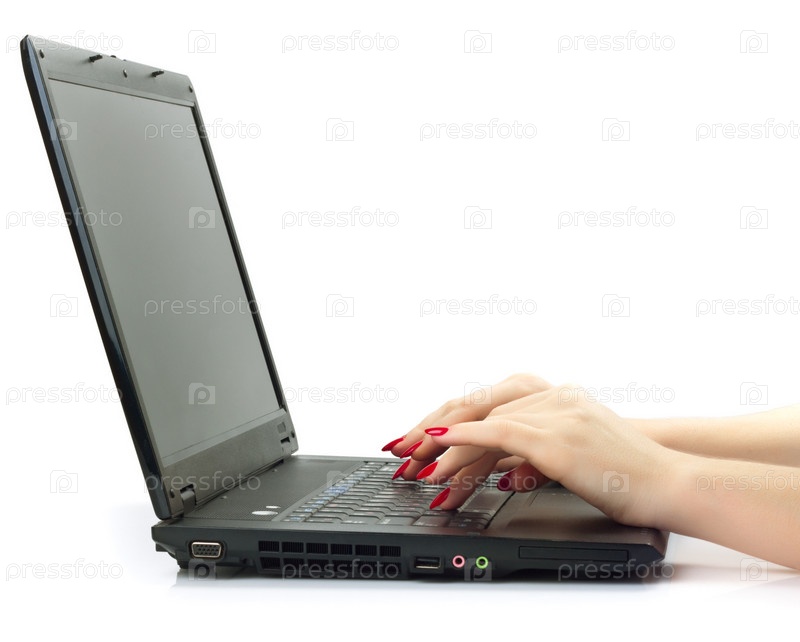 Руки на клавиатуре ноутбука, изолированные на белом фоне