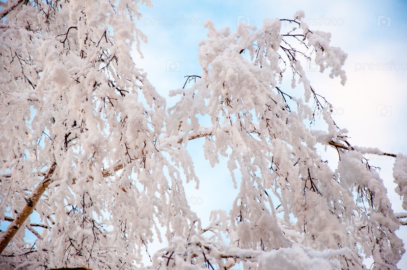 Белый пушистый снег на белой березе