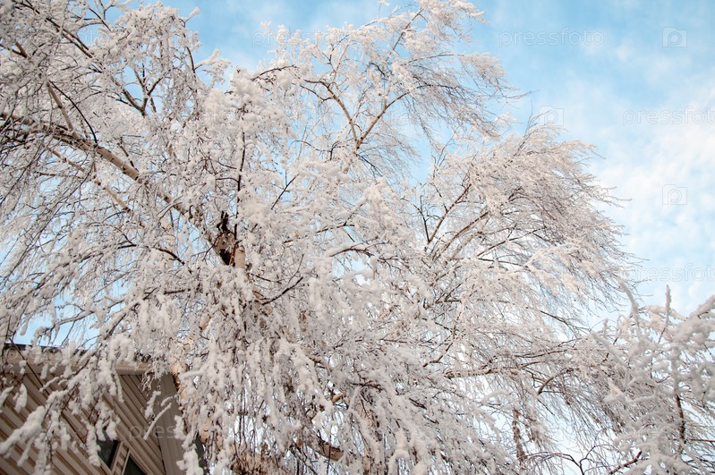 Белый пушистый снег на белой березе