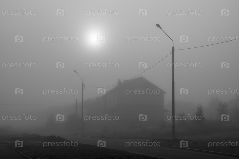 Силуэты домов в сильном тумане