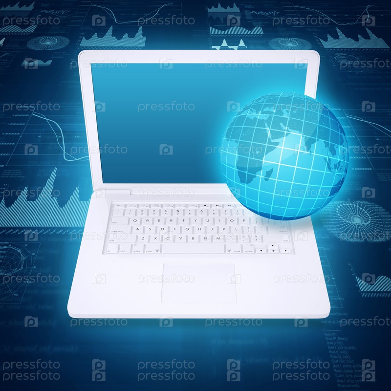 Ноутбук, глобус и графика