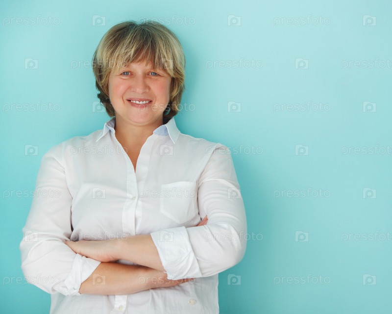 Женщина средних лет смотрит в камеру