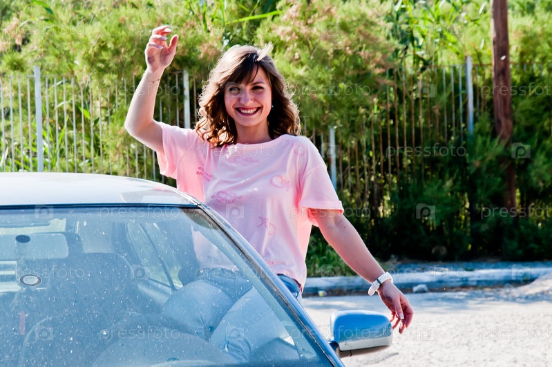 Молодая и красивая женщина в автомобиле
