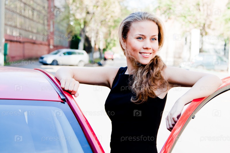 Молодая и красивая женщина в автомобиле