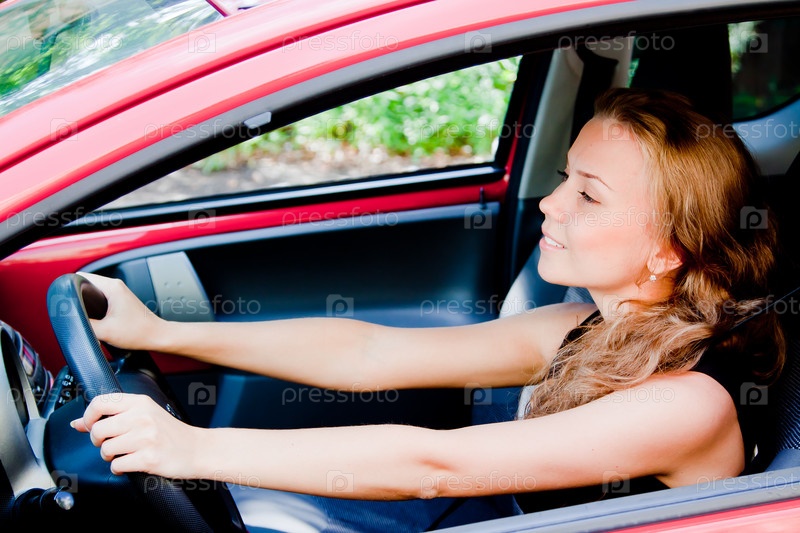 Молодая и красивая женщина в автомобиле