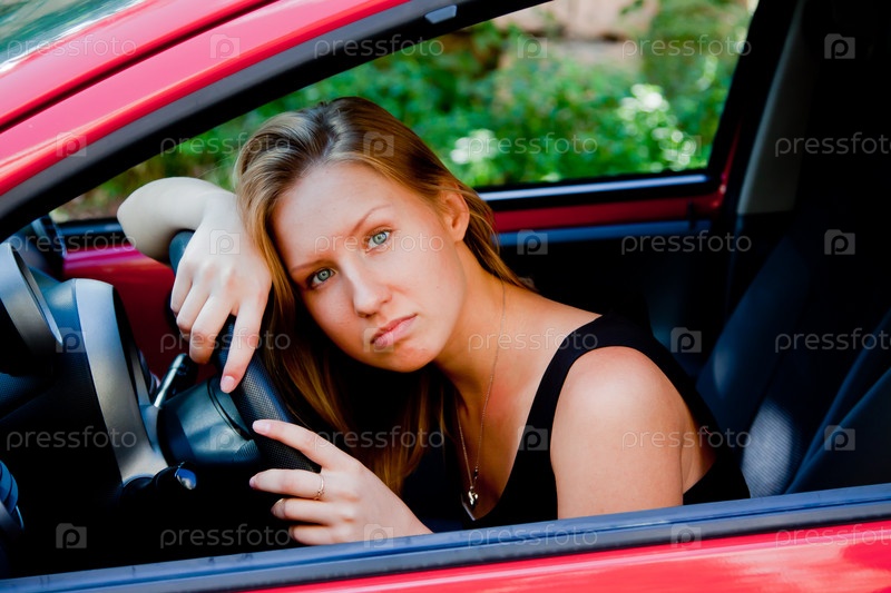 Молодая и красивая женщина в автомобиле