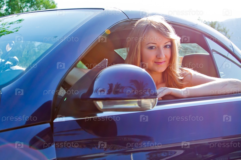 Молодая и красивая женщина в автомобиле
