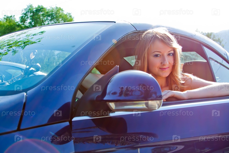 Молодая и красивая женщина в автомобиле