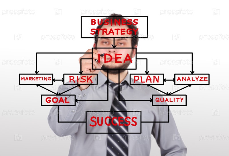 Бизнесмен рисует схему деловой стратегии