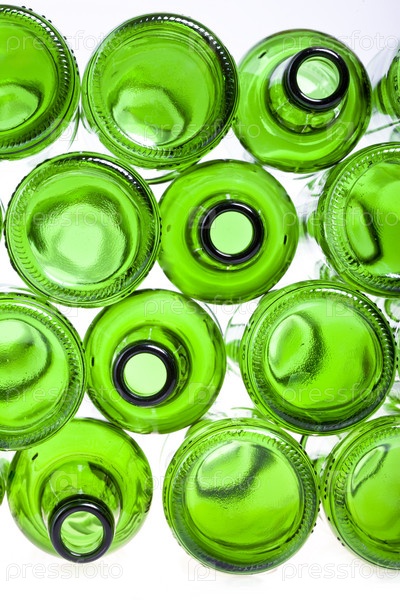 Зеленые пустые стеклянные бутылки