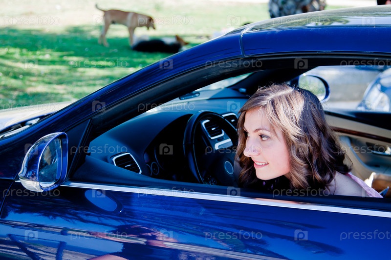 Молодая и красивая женщина в автомобиле