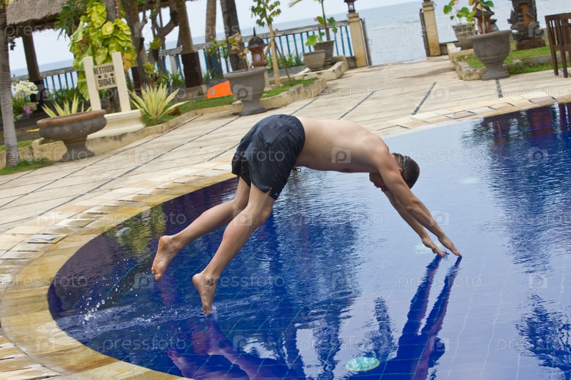 Молодой мужчина, прыгающий в бассейн