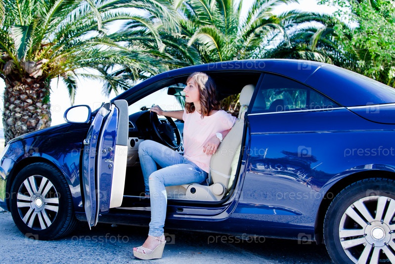 Молодая и красивая женщина в автомобиле