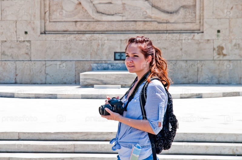 Молодая и красивая женщина турист