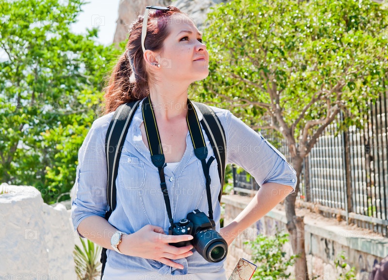 Молодая и красивая женщина турист