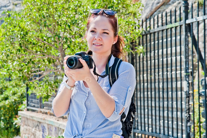 Молодая и красивая женщина турист