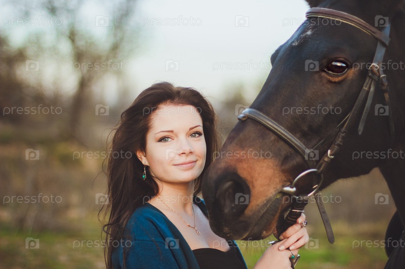 Молодая женщина с лошадью на природе