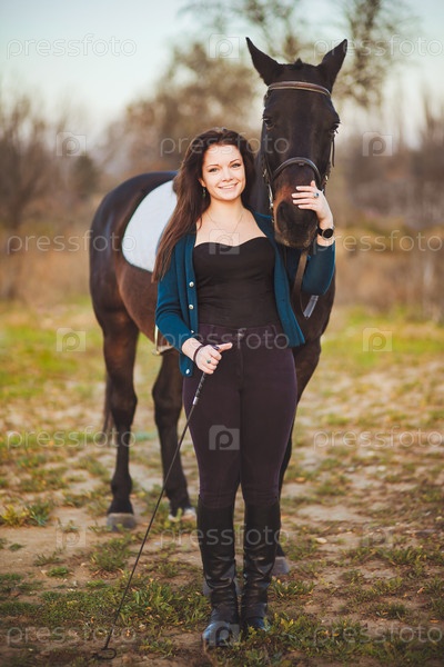 Молодая женщина с лошадью на природе