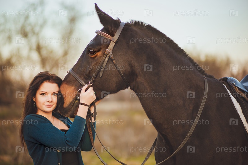 Молодая женщина с лошадью на природе