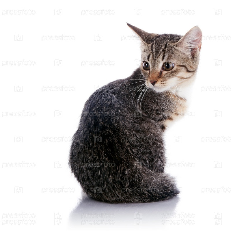 Полосатый котенок сидит