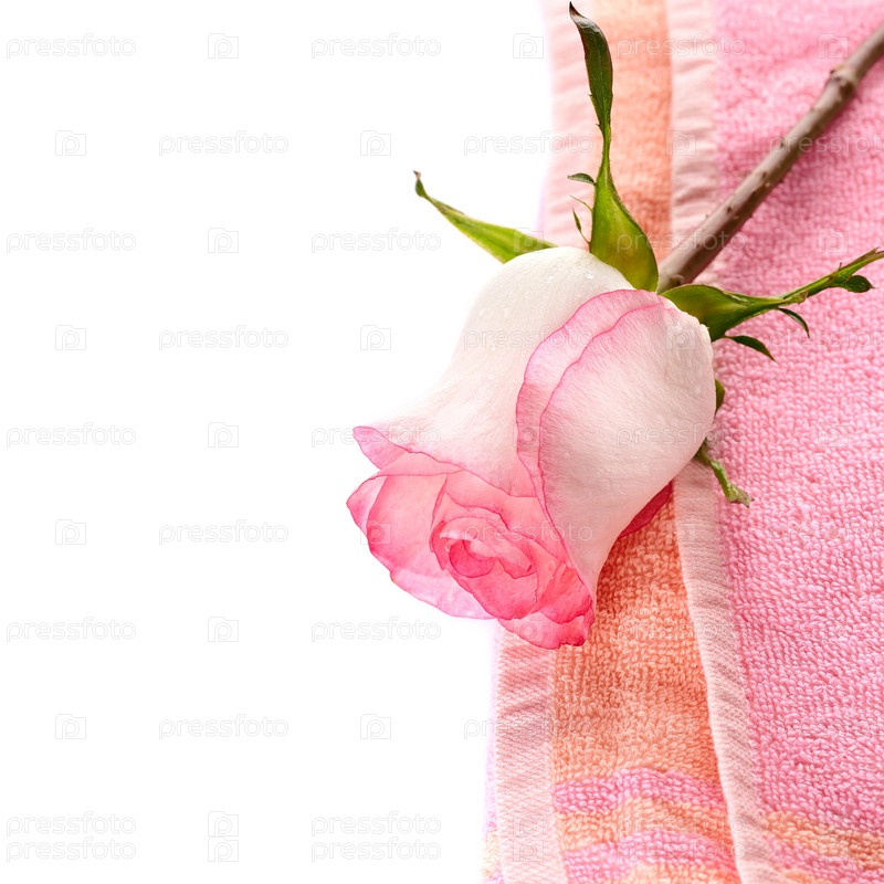 Розовая роза и полотенце