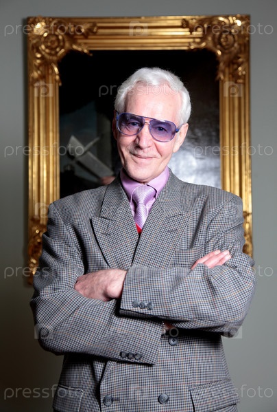 Пожилой мужчина на фоне картины