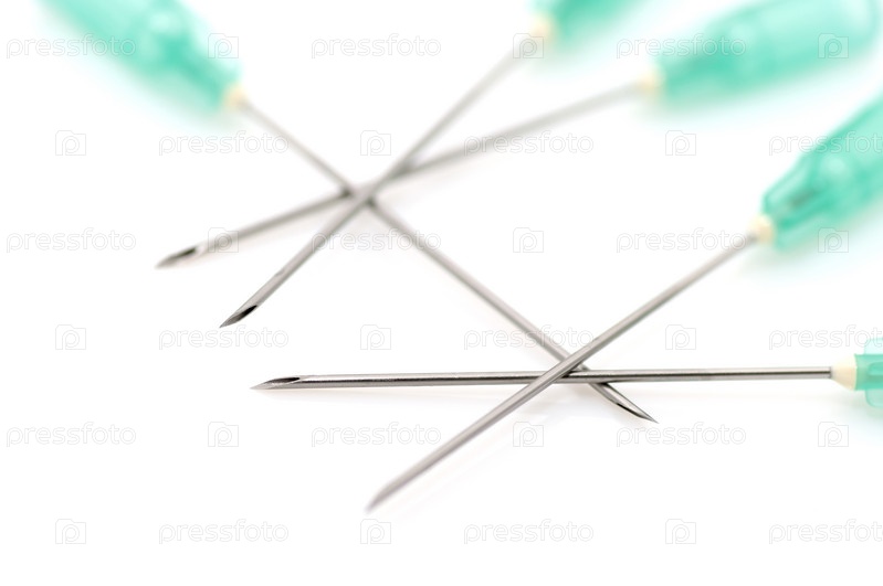 Иглы от шприцов на белом фоне