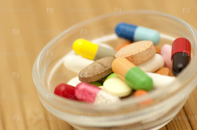 Салатница с таблетками и капсулами