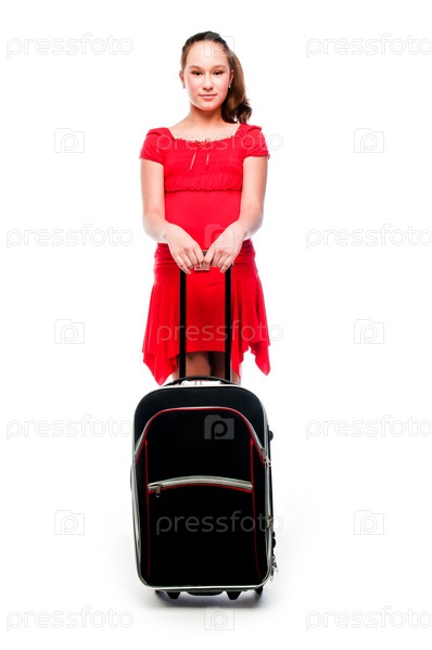 Красивая девочка с чемоданом