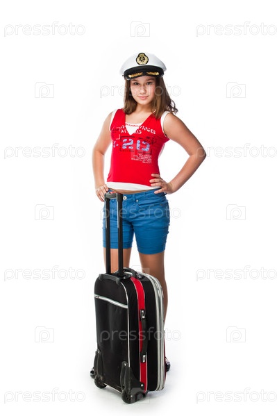 Красивая девочка с чемоданом