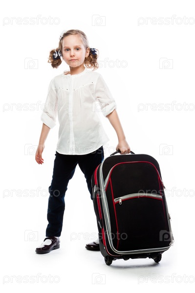Красивая девочка с чемоданом