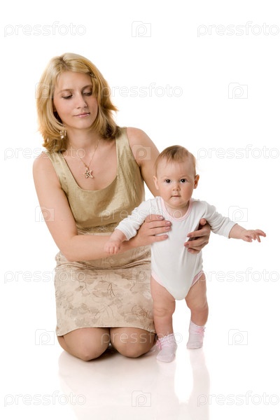 Мать с маленькой дочкой на белом фоне