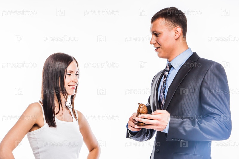 Молодой и красивый менеджер по туризму и клиент