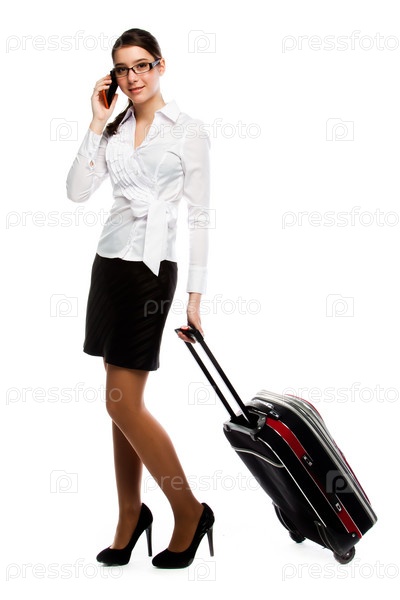 Молодая и красивая женщина с чемоданом
