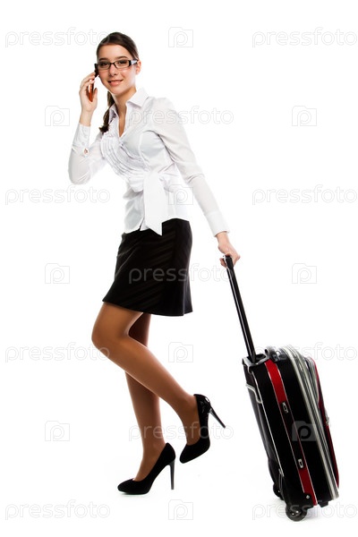Молодая и красивая женщина с чемоданом