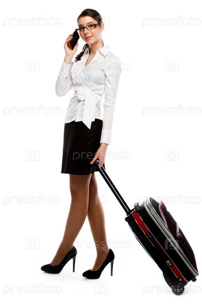 Молодая и красивая женщина с чемоданом