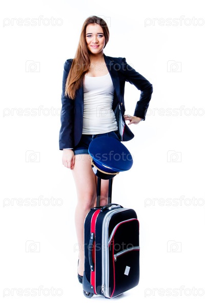 Молодая и красивая женщина с чемоданом