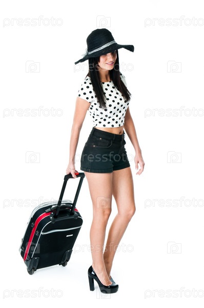 Молодая и красивая женщина с чемоданом
