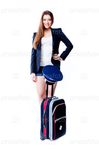 Молодая и красивая женщина с чемоданом