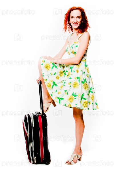 Молодая и красивая женщина с чемоданом