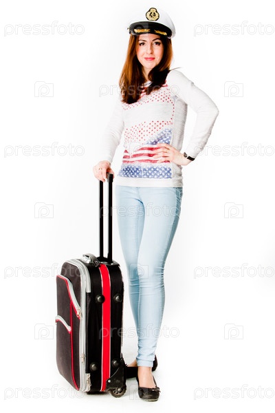 Молодая и красивая женщина с чемоданом