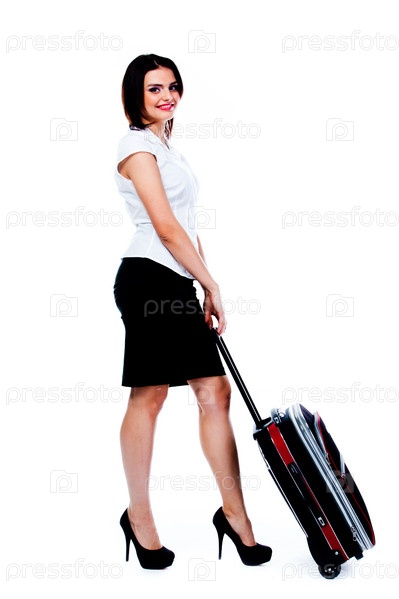 Молодая и красивая женщина с чемоданом