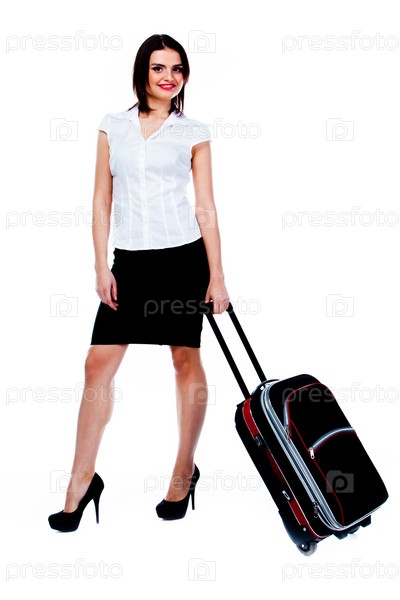 Молодая и красивая женщина с чемоданом