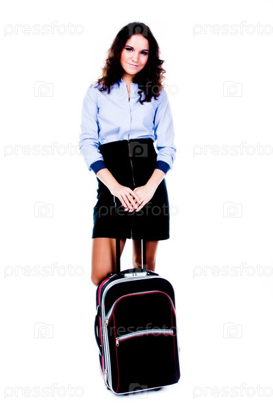 Молодая и красивая женщина с чемоданом