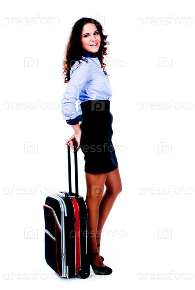 Молодая и красивая женщина с чемоданом