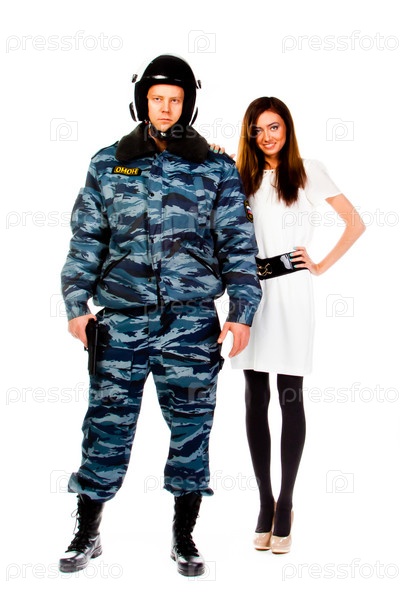 Молодая красивая женщина и офицер полиции