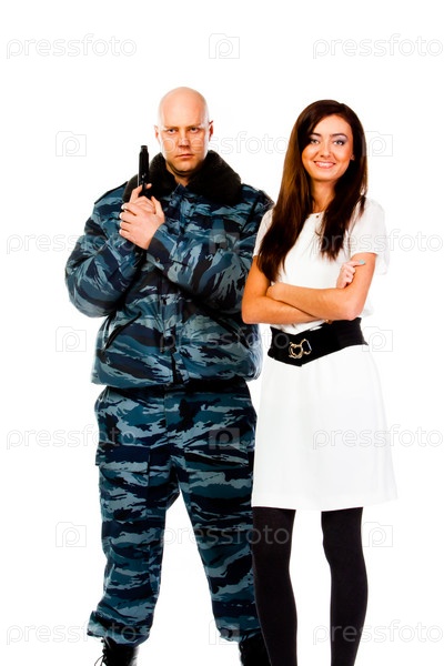 Молодая красивая женщина и офицер полиции